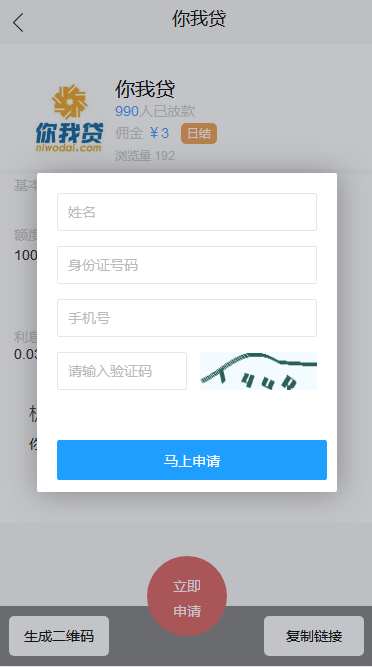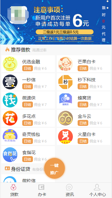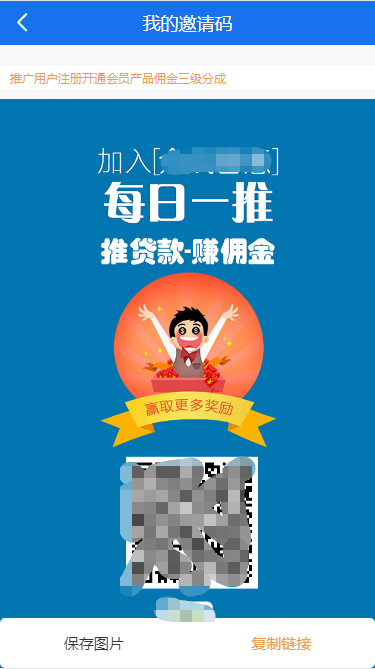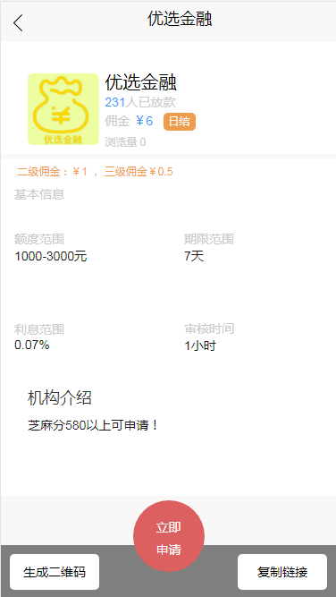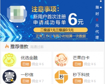 3.推广别人申请借贷产品 后台核实 推广者获得佣金 同时推广者的上级 和上上级获得不同金额的佣金